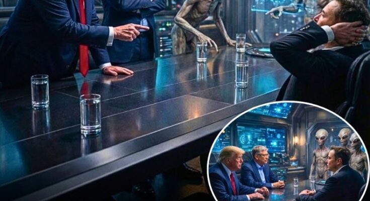 In a scenario that sounds more like a blockbuster movie than reality, Donald Trump, Bill Gates, and Elon Musk reportedly found themselves seated across from extraterrestrial beings in a secret, heavily secured facility. This unprecedented meeting, shrouded in secrecy and advanced technology, marked what many insiders describe as the most significant moment in modern human history. It wasn’t merely a diplomatic exchange—it was the first direct conversation between humanity and an intelligent civilization beyond Earth.