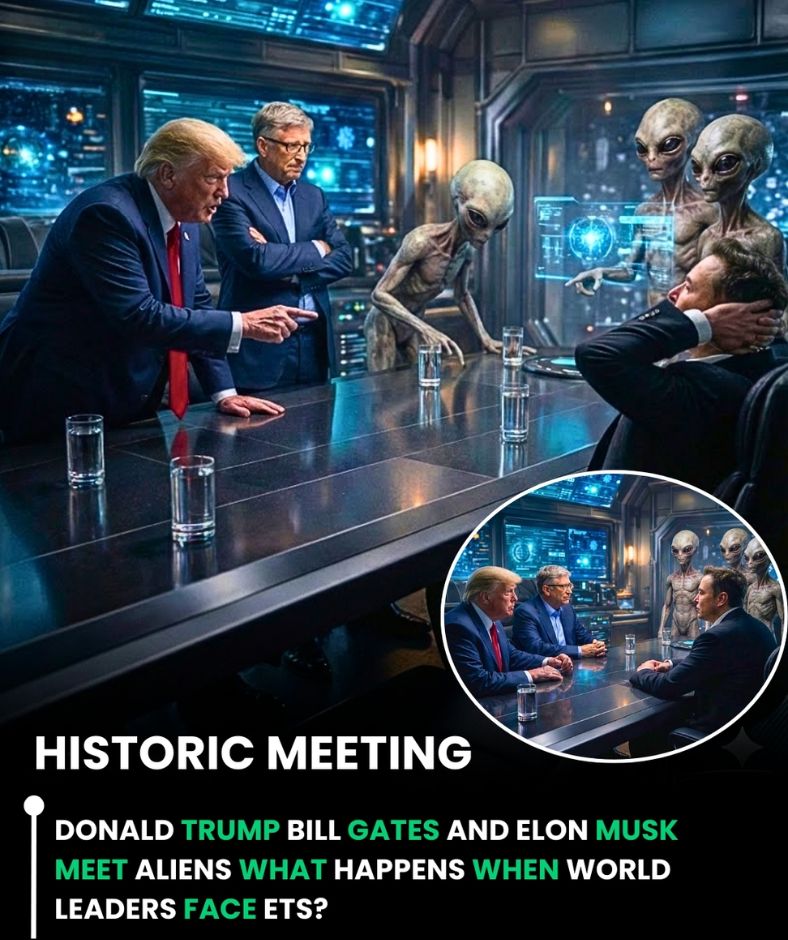 In a scenario that sounds more like a blockbuster movie than reality, Donald Trump, Bill Gates, and Elon Musk reportedly found themselves seated across from extraterrestrial beings in a secret, heavily secured facility. This unprecedented meeting, shrouded in secrecy and advanced technology, marked what many insiders describe as the most significant moment in modern human history. It wasn’t merely a diplomatic exchange—it was the first direct conversation between humanity and an intelligent civilization beyond Earth.